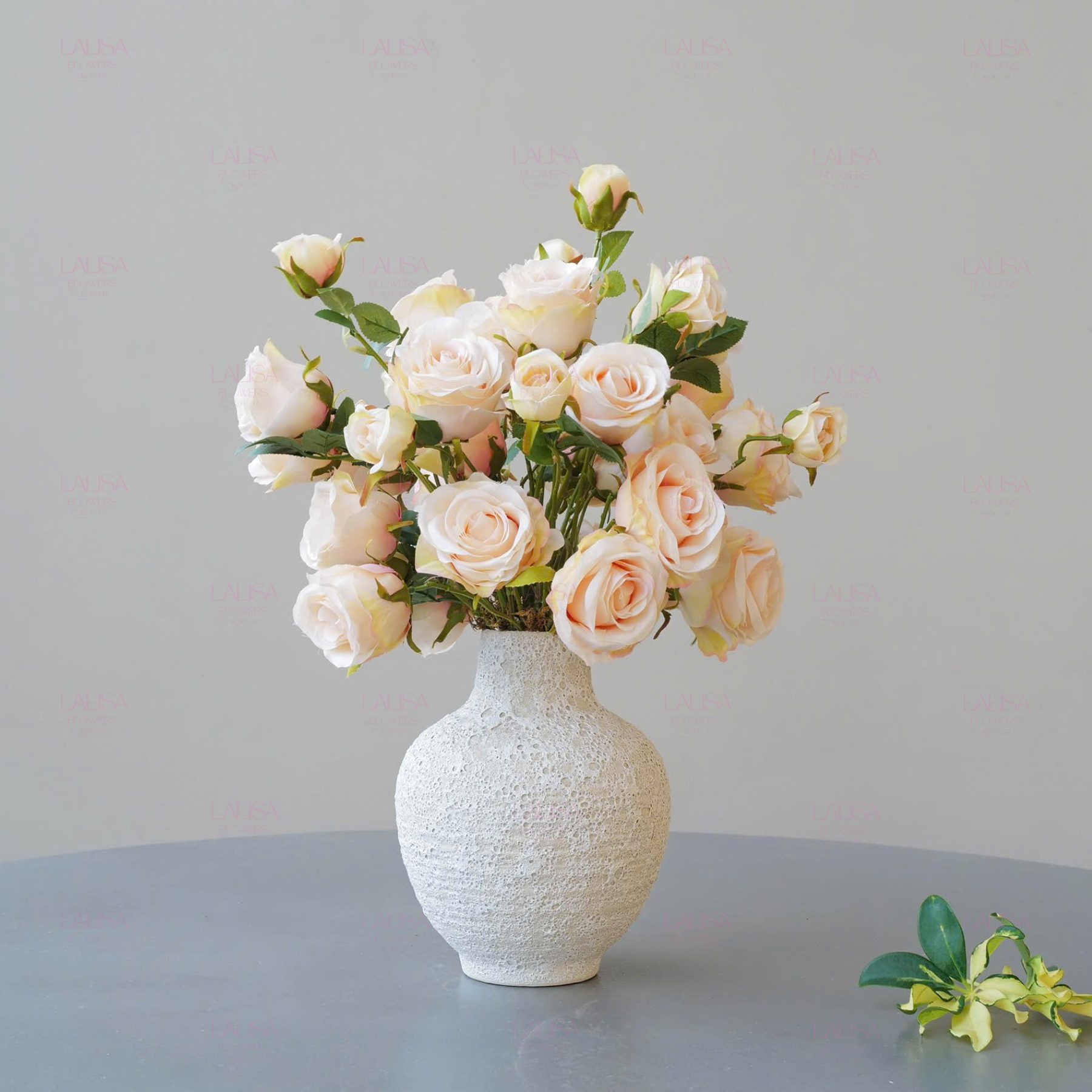 Hoa: hoa hồng 20 cành màu vàng nhạt chất liệu lụa cao cấp