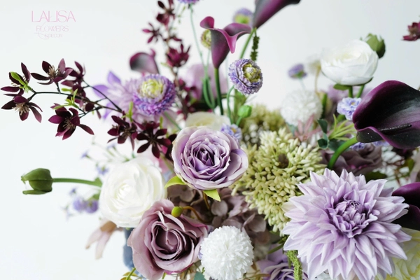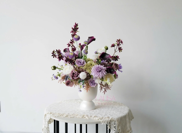 Bình Hoa Lụa Calla Lily Pastel Tím Mận